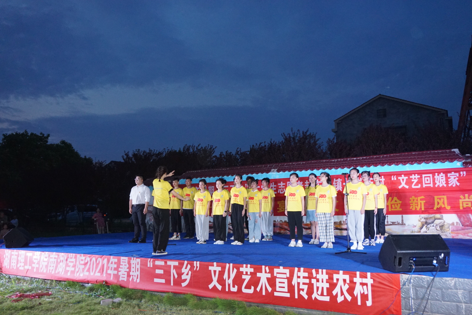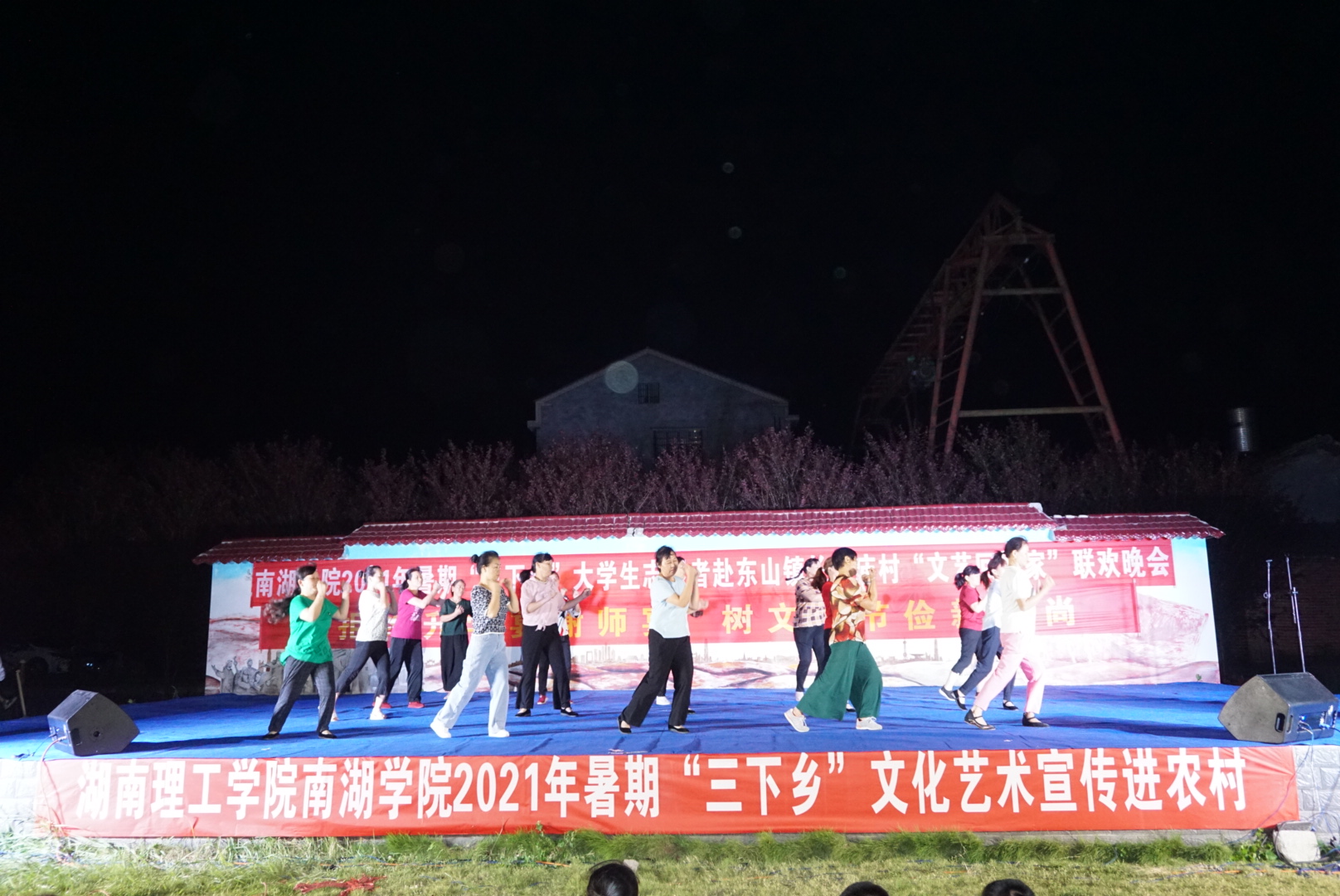 7月11日晚,“文艺回娘家”联欢晚会在华容县东山镇长岗庙村村民服务中心举行。东山镇镇长文磊、东山镇党委委员刘琼、长岗庙村村支两委全体干部、岳阳市益阳商会副会长刘勇、体育学院副院长马岳良、南湖学院党委书记柳周峰、副院长李革新、机电系党总支书记喻立平、团委书记夏玉宁、机电系团总支书记王紫梦以及300余名长岗庙村村民齐聚一堂,欣赏了丰富多彩的文艺节目。