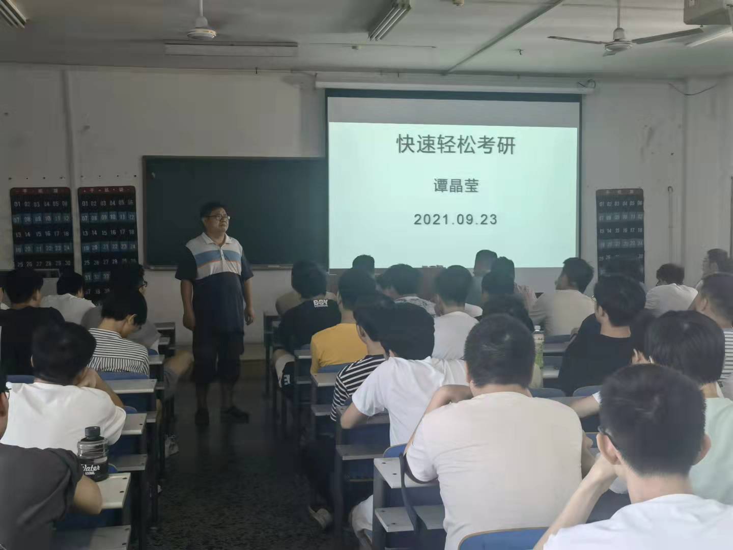 会议伊始,谭晶莹首先就近年来的考研数据来向同学们介绍相关考研专业和考研院校,并提醒同学们合理规划,不要盲从。随后他对考研主要科目分别进行分析,并提出提分建议,推荐相关院校。接着就专业、导师、地区三个方面来指导同学们选择目标院校,并强调了在考研的过程中信息收集的重要性,同时也鼓励同学们树立信心,坚定信念,拼到考场。会议最后,谭晶莹等人对考研同学们进行了一对一的考研择校指导。