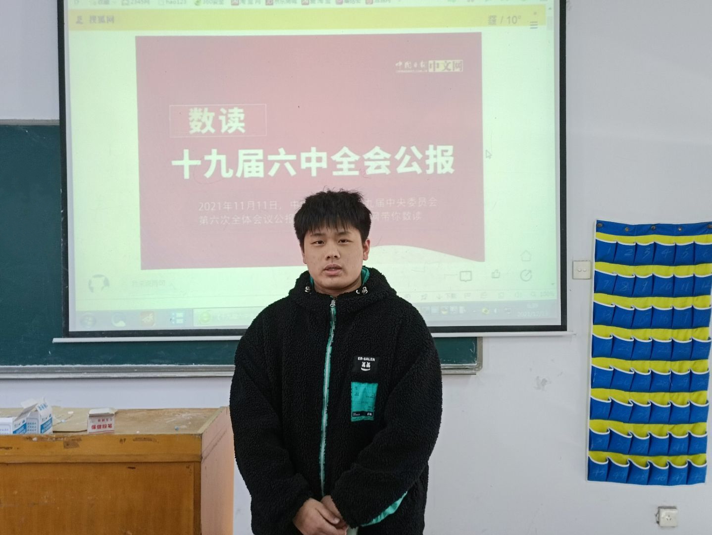 为深入学习贯彻党的十九届六中全会精神,安排部署相关重点工作,对下阶段团学会工作提出新要求,机电系于2021年12月13日在文学楼2311教室开展学习党的十九届六中全会精神宣讲活动。机电系全体团学会成员参加本次活动,团总支书记王紫梦为主讲人。