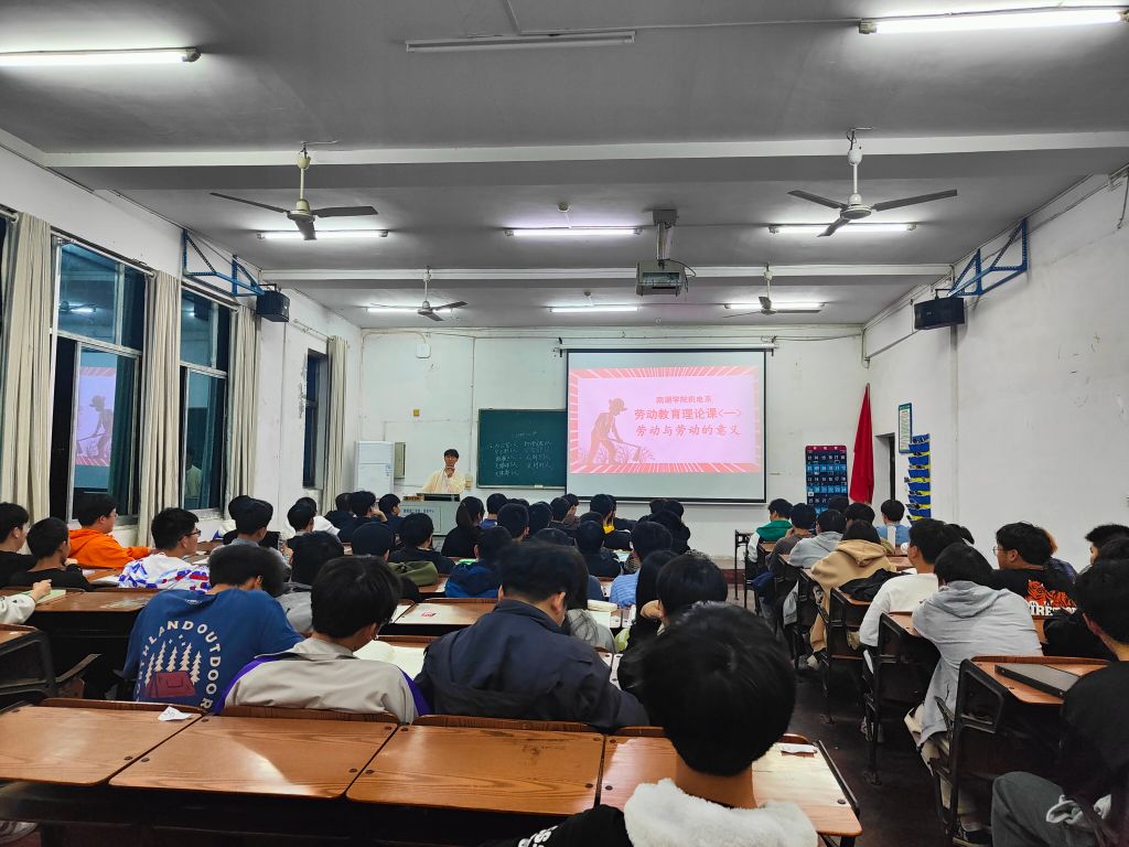 为加强对学生的劳动思想教育,让学生了解劳动教育的意义。机电系于2023年3月9日19点,在一栋教学楼1508教室进行了关于劳动教育的系列讲座。由22级辅导员彭添宝主讲,机电系新生班级参与。