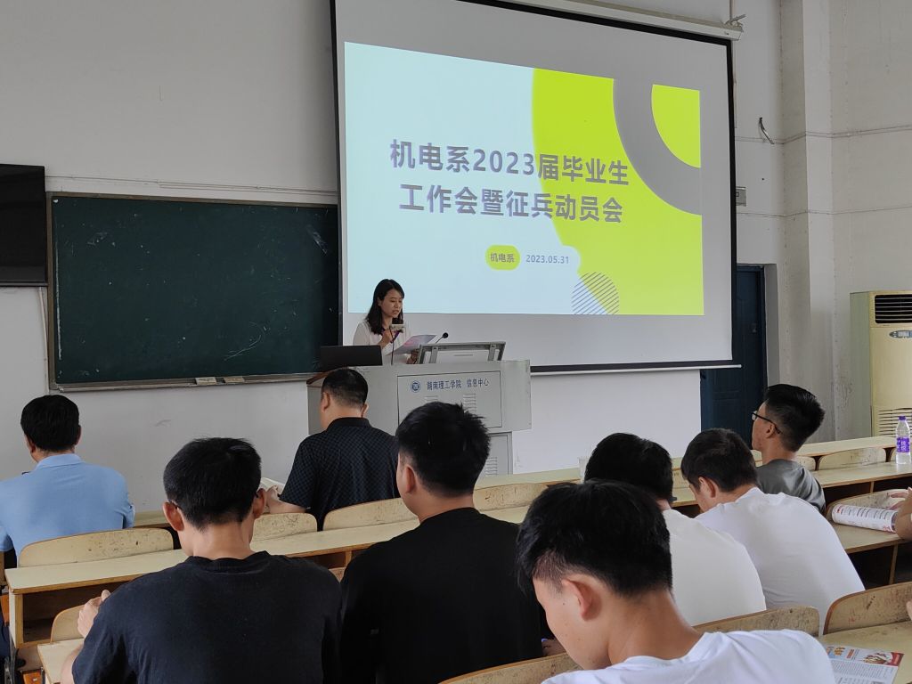为更好的促进应届毕业生就业,帮助毕业生熟悉毕业流程,了解就业形势。南湖机电系于2023年5月31日下午在二栋教学楼2T3教室召开了23届毕业生工作会暨征兵动员会。南湖学院副院长、机电系主任蔡安辉,机电系党总支书记喻立平,毕业生辅导员王紫梦及毕业生参加会议。由辅导员王紫梦主持会议。
