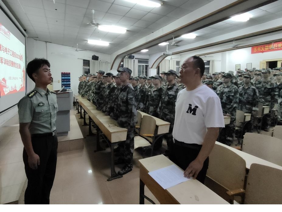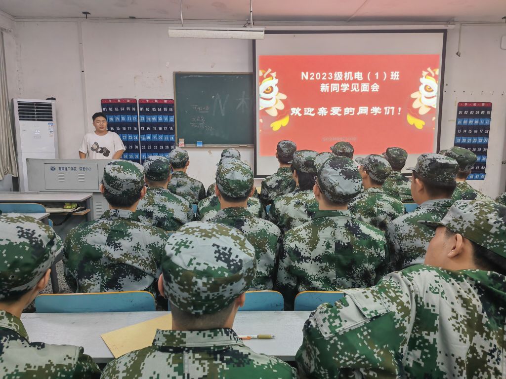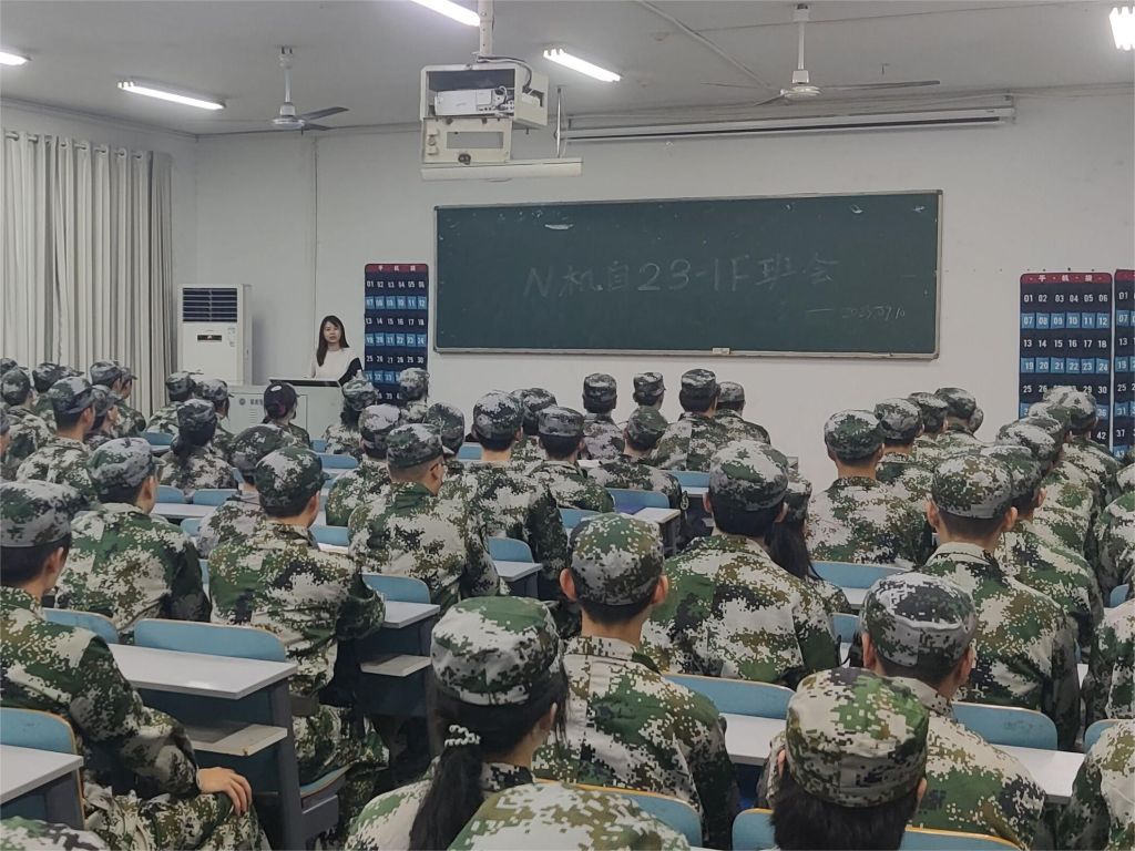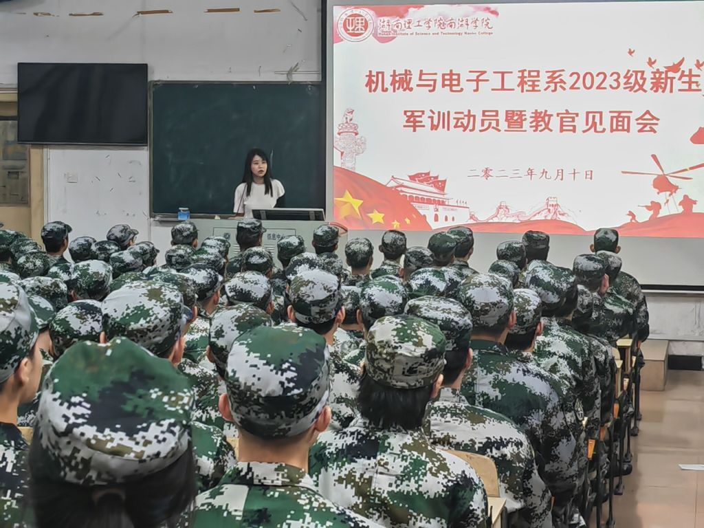 2023年9月10日晚7点,南湖学院机电系于2T2教室召开了23级新生军训动员暨教官见面会。参加本次会议的有机电系党总支书记喻立平、23级辅导员王紫梦、23级军训教官以及全体23级新生。会议由王紫梦主持。