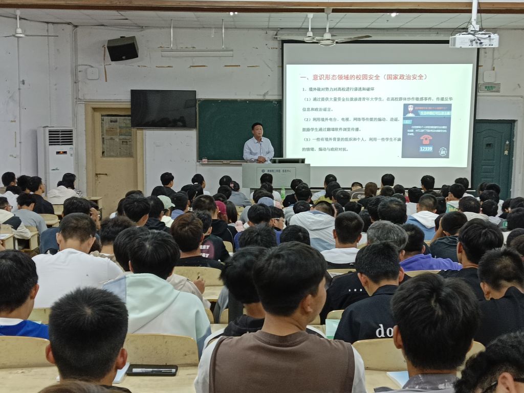 随后,保卫处谭良机副处长就学校的实际情况,从意识形态领域的校园安全(国家政治安全)、宗教信仰、不法分子对新生的各类诈骗手段及方法解读、人身和财产安全、校园贷、电信诈骗、交通安全、传销陷阱、消防安全、食品安全和禁毒防艾等方面向同学们逐一展开详细讲解。而且,他还重点提到了网络诈骗的常见形式,为同学们提出了相应的防诈骗策略,呼吁大家认真学习防诈知识,提高防诈能力。提醒同学们下载并注册使用“国家反诈”软件,记下学校保卫处电话。最后由23级辅导员王紫梦进行会议总结,她举出了身边发生的几个真实事例,并提醒同学们要提高自我防范意识,不要被轻易欺骗。