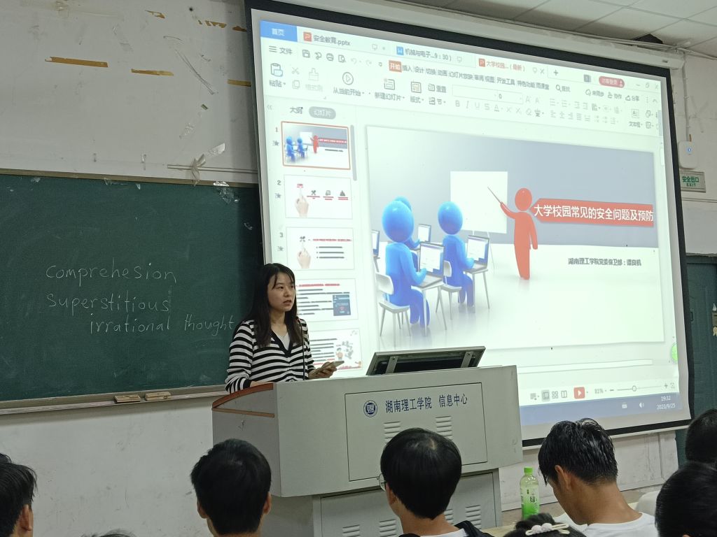 为了提高新生的安全意识、增强自我保护能力,确保新学期安全工作的有序进行。机电系于2023年9月25日晚上19:30在二号教学楼2T2教室召开了23级新生安全教育主题讲座。讲座由湖南理工学院保卫处副处长谭良机主讲。23级新生辅导员王紫梦及23级全体新生参加。