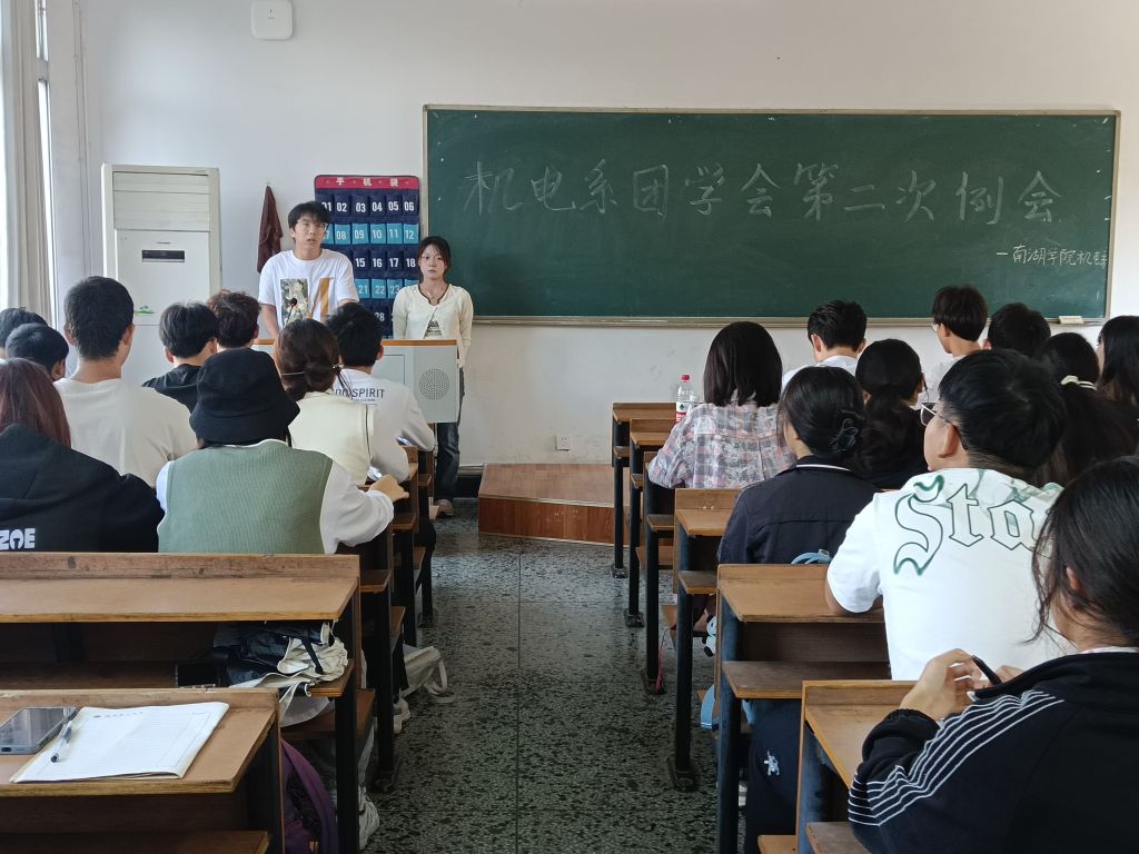 2023年10月17日,南湖机电系于2311教室召开了机电系第十六届团学会第二次会议,参与本次会议的有机电系团总支书记彭添宝,23级全体班委,团学会干部及实习干事。由办公室实习干事潘存众主持本次会议。