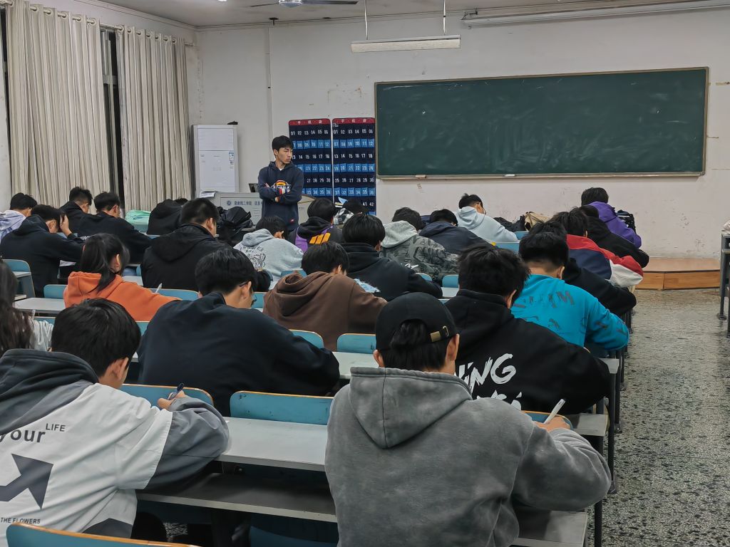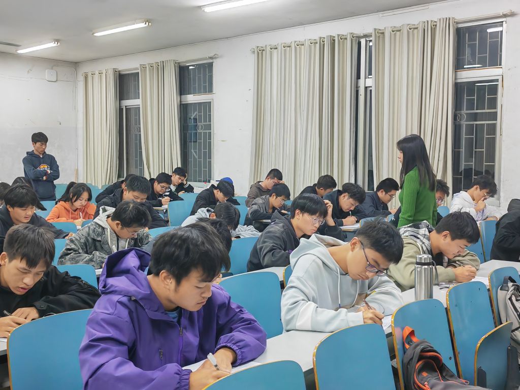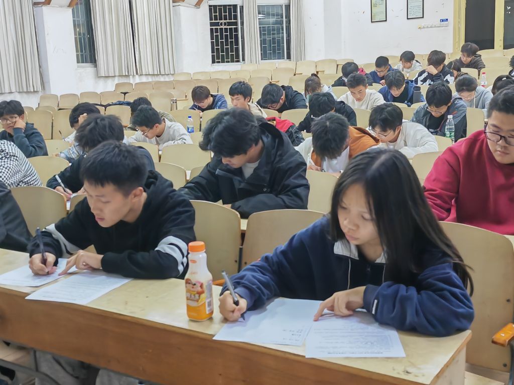 入学教育是新生适应大学生活,熟悉校园规则,确定学习目标、发展方向的关键一步。为引导新生厚植家国情怀、树立远大理想、了解校纪校规、明确学习目标,2023年11月6日晚上7点,南湖学院机电系在二栋教学楼进行了新生入学教育考试。2023级全体新生参加本次考试,此次考试由全体新生助理班主任监考,2023级辅导员王紫梦和学习部干部巡考。