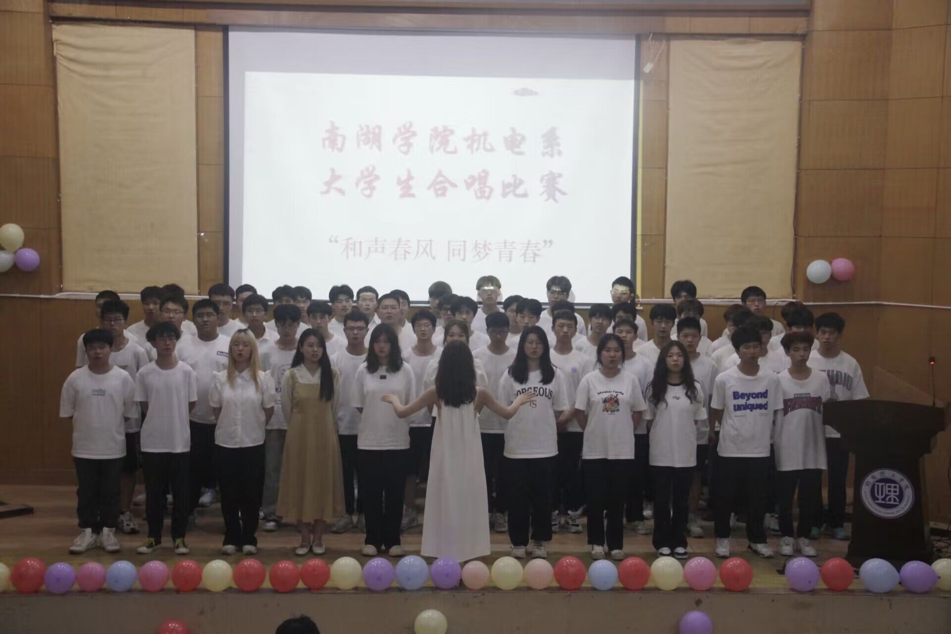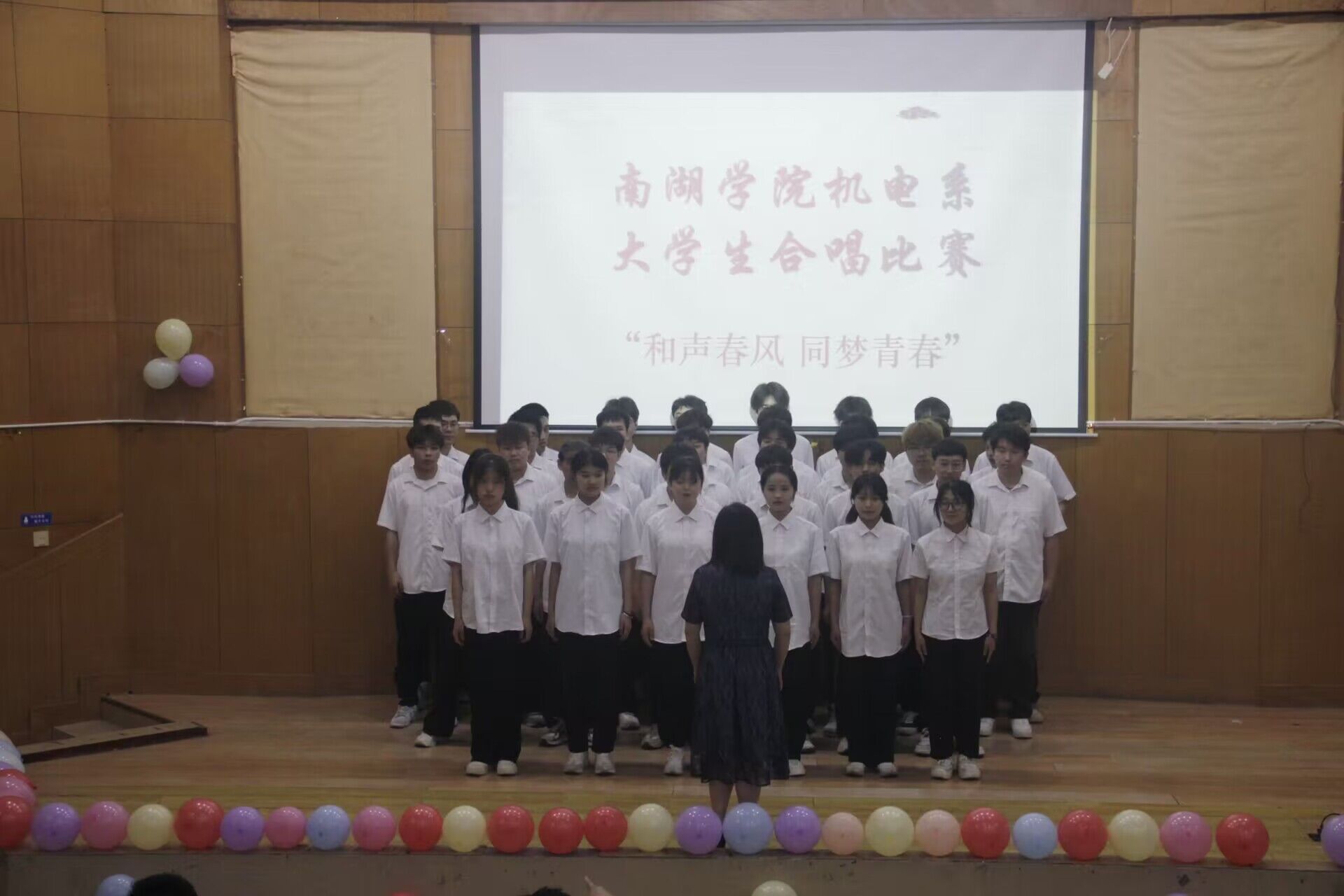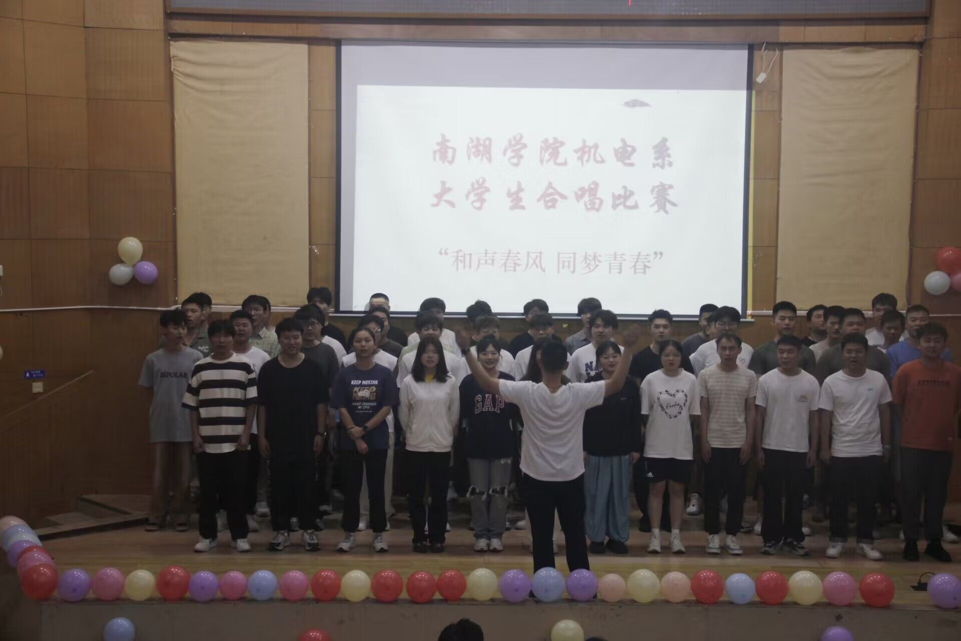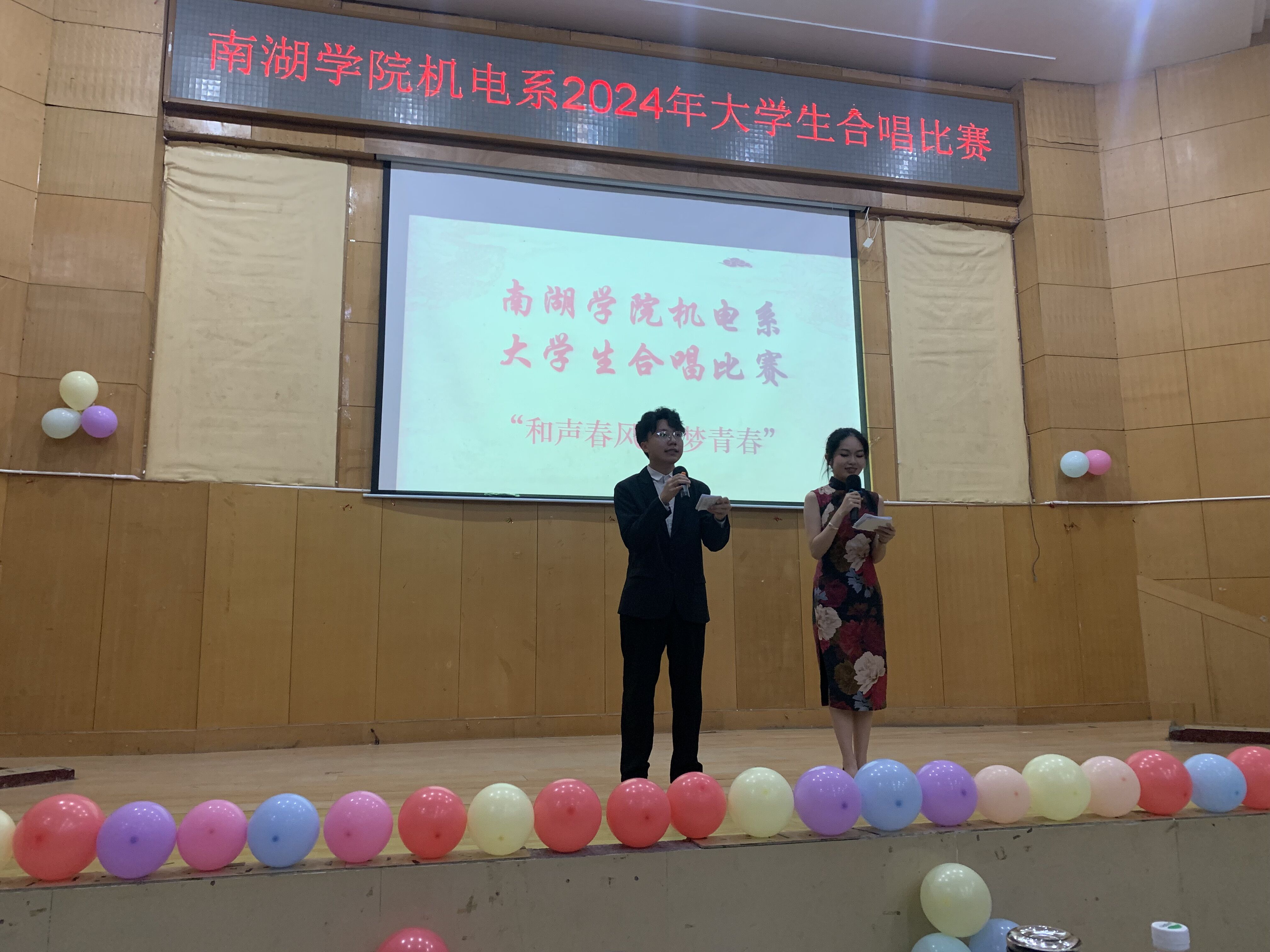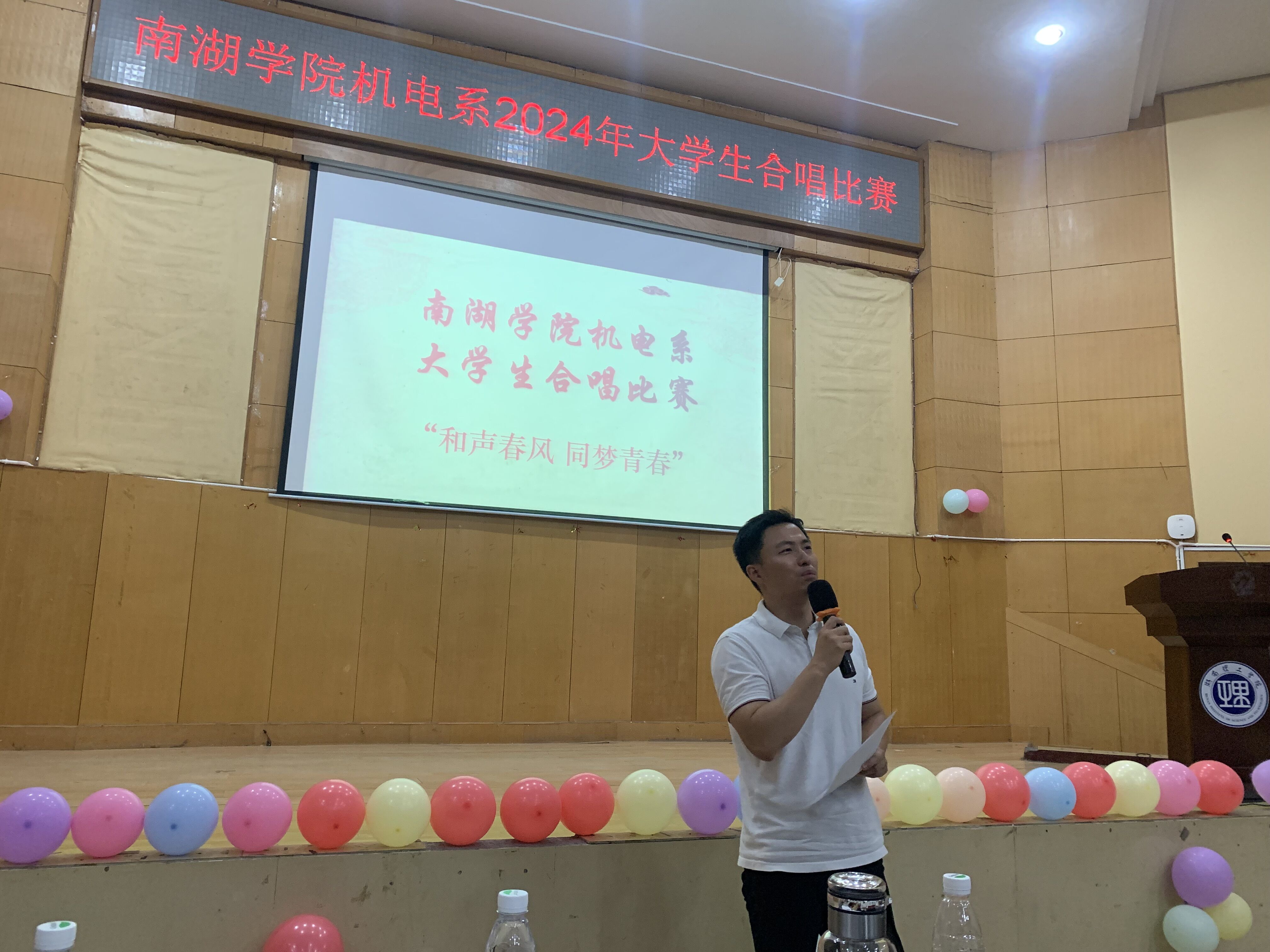 2024年5月17日晚,南湖学院机电系在东院报告厅隆重举办了2024年“和声春风 同梦青春”合唱比赛。此次比赛汇聚了机电系大一至大三年级的同学,班主任老师参与其中,共同呈现了一场音乐盛宴。观赛人员有机电系学工老师以及23级全体同学。本次比赛由黄海峰和文婕同学担任主持人,白晓东、刘芬芬和李柳老师担任评委。