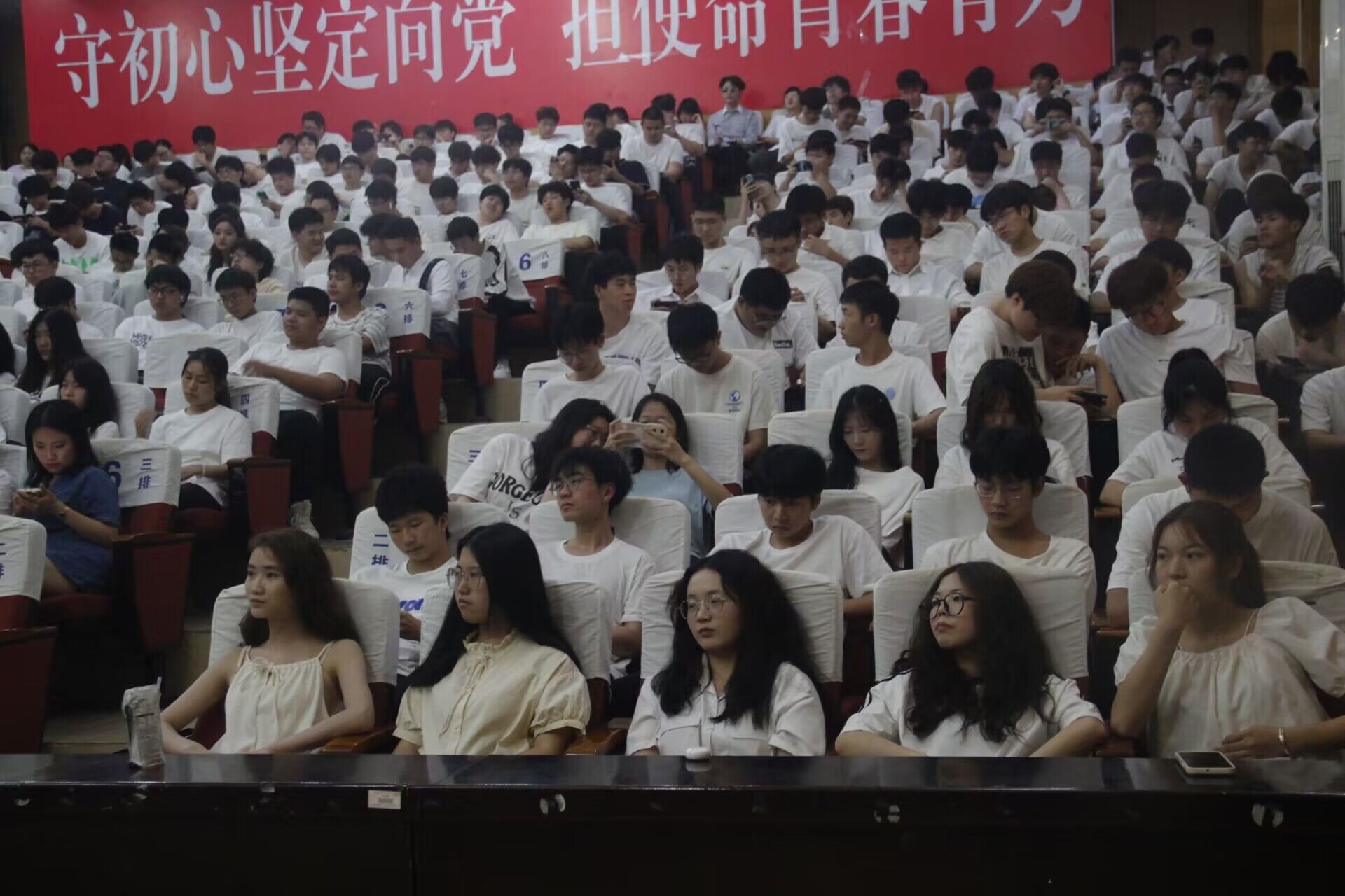 比赛开始,在两位主持人的引领下,比赛正式拉开帷幕。此次合唱比赛,从大三至大一各班依次上台进行表演。每个班级都精心准备,用歌声传递着青春的热情与活力。他们的歌曲风格各异,有激昂的、有柔情的、有欢快的,但都同样精彩纷呈。大一的同学虽然青涩,但他们的表演充满了朝气与活力,令人眼前一亮。大二的同学更加饱满和有力,能够给合唱带来更多的层次感。大三的同学则更显成熟稳重,他们的歌声中透露出对过去的怀念和对未来的憧憬。比赛过程中,大家都被同学们的歌声所感染,观众们反响热烈。