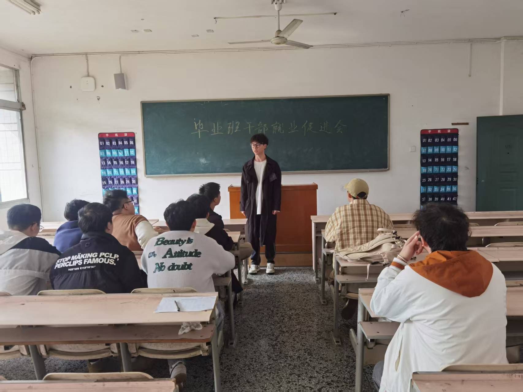 随后,2022级辅导员彭添宝对就业工作进行了具体部署,并提出了明确要求。他详细介绍了本学期直至毕业前的就业工作安排与时间节点,要求全体班委务必准确、及时地将各项就业通知与要求传达至每一位同学,确保信息渠道畅通无阻;同时,要协助做好班级同学的就业意向摸排与动态跟踪,建立精准台账,做到心中有数、手中有策,共同营造积极向上的就业氛围。