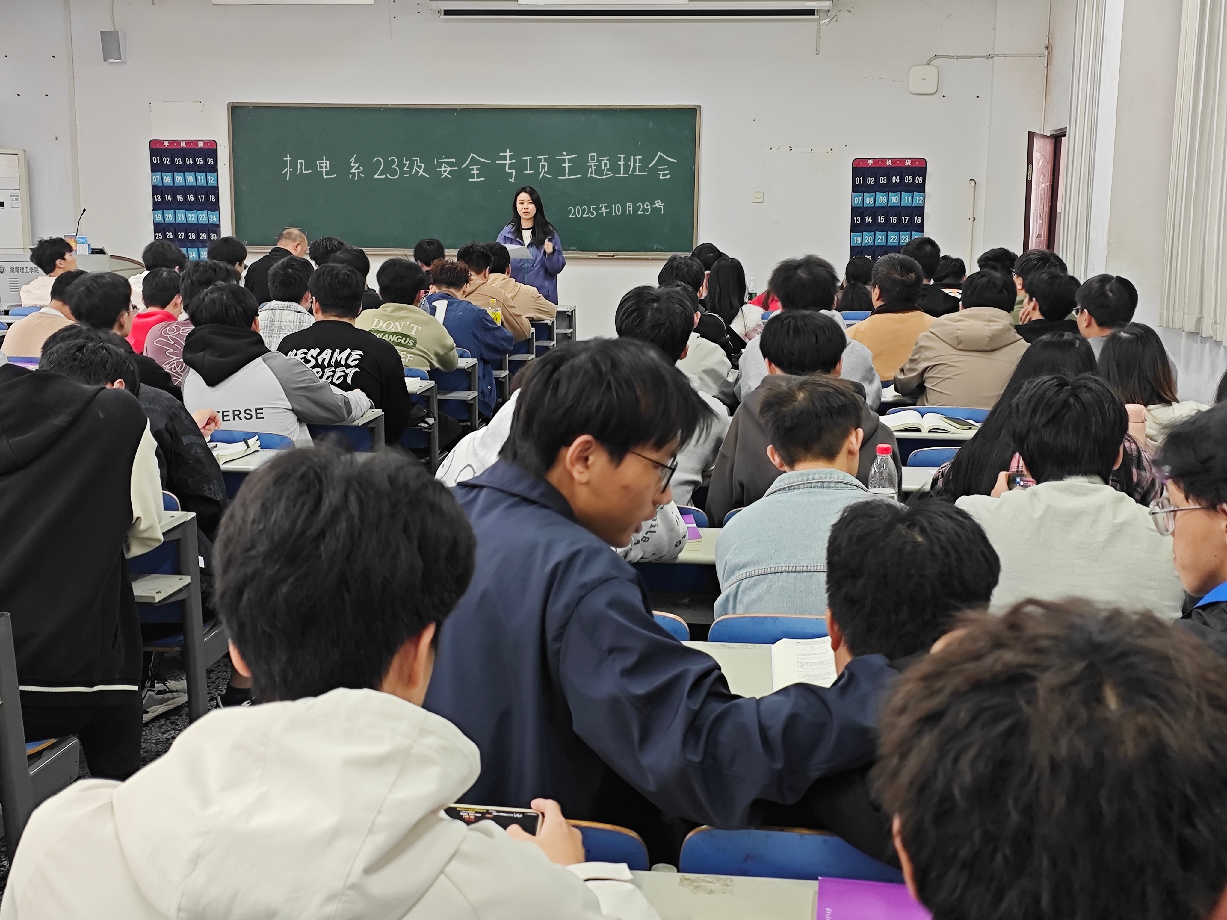 为进一步加强校园安全管理,响应学校党委学工部、保卫部联合发布的专项教育班会通知要求,南湖学院机电系于2025年10月29日至31日期间,组织全系各班级集中开展了以“规范电动车使用,共建平安校园”为主题的专项教育班会。本次活动旨在全面强化学生的交通安全意识、消防安全观念及食品安全理念,班会覆盖机电系所有年级班级。