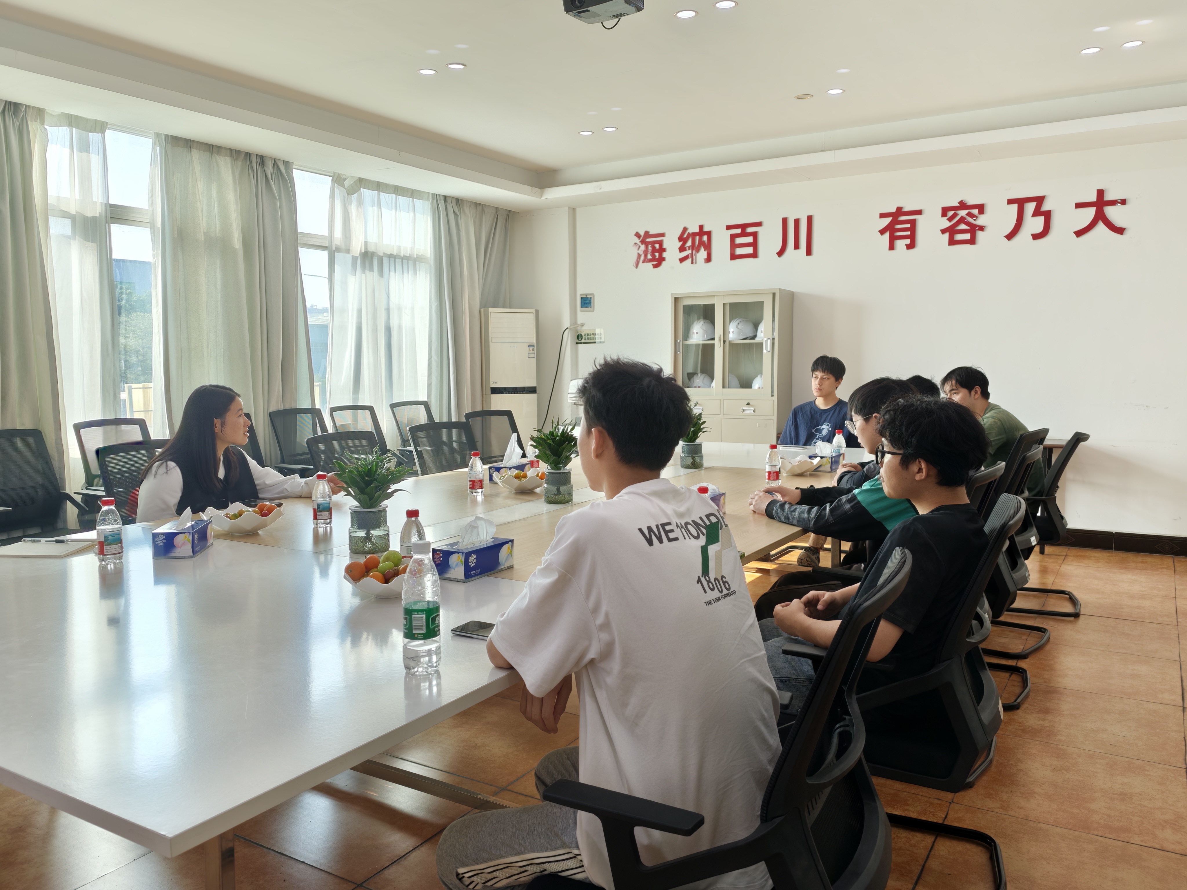 在与实习生的座谈会上,同学们分享了各自在不同实习岗位上的工作内容、收获体会以及遇到的挑战。老师们认真聆听了每一位同学的发言,对同学们能够快速适应环境、积极投入工作的表现感到欣慰。彭添宝老师详细询问了同学们的生活起居、安全保障等情况,并给予了细致的指导和建议。刘芬芬老师代表系部向实习生们表达了诚挚的慰问,她勉励同学们:一要珍惜在海大集团这样优质平台的实习机会,将理论知识与生产实践紧密结合,锻炼真本领;二要积极融入企业,主动学习,勤于思考,善于总结,在实践中不断提升解决复杂工程问题的能力;三要注意生产安全与个人安全,遵守企业规章制度,展现南湖学子的良好风貌。她表示,系部始终是同学们的坚强后盾,将持续关注大家的成长,并期待同学们圆满完成实习任务,为未来的职业生涯奠定坚实基础。