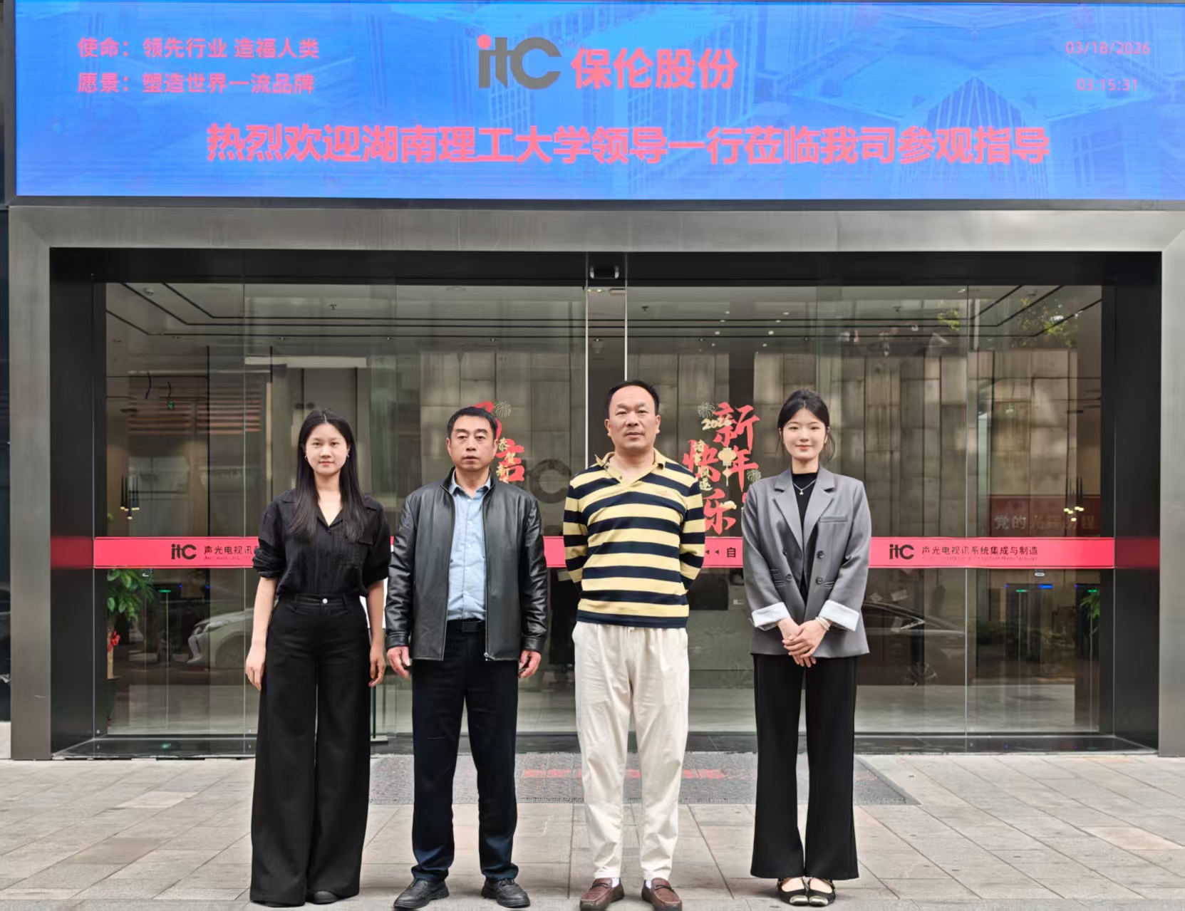 2026年3月19日至20日,南湖学院副院长兼机电系主任蔡安辉和机电系党总支书记喻立平前往广东保伦电子股份有限公司进行走访交流。此行旨在加强校企合作关系,推动实习就业一体化建设。保伦公司人事部经理陈晓纯等负责人热情接待,全程陪同参观公司产品展厅,并详细介绍企业发展历程、技术创新及人才需求。