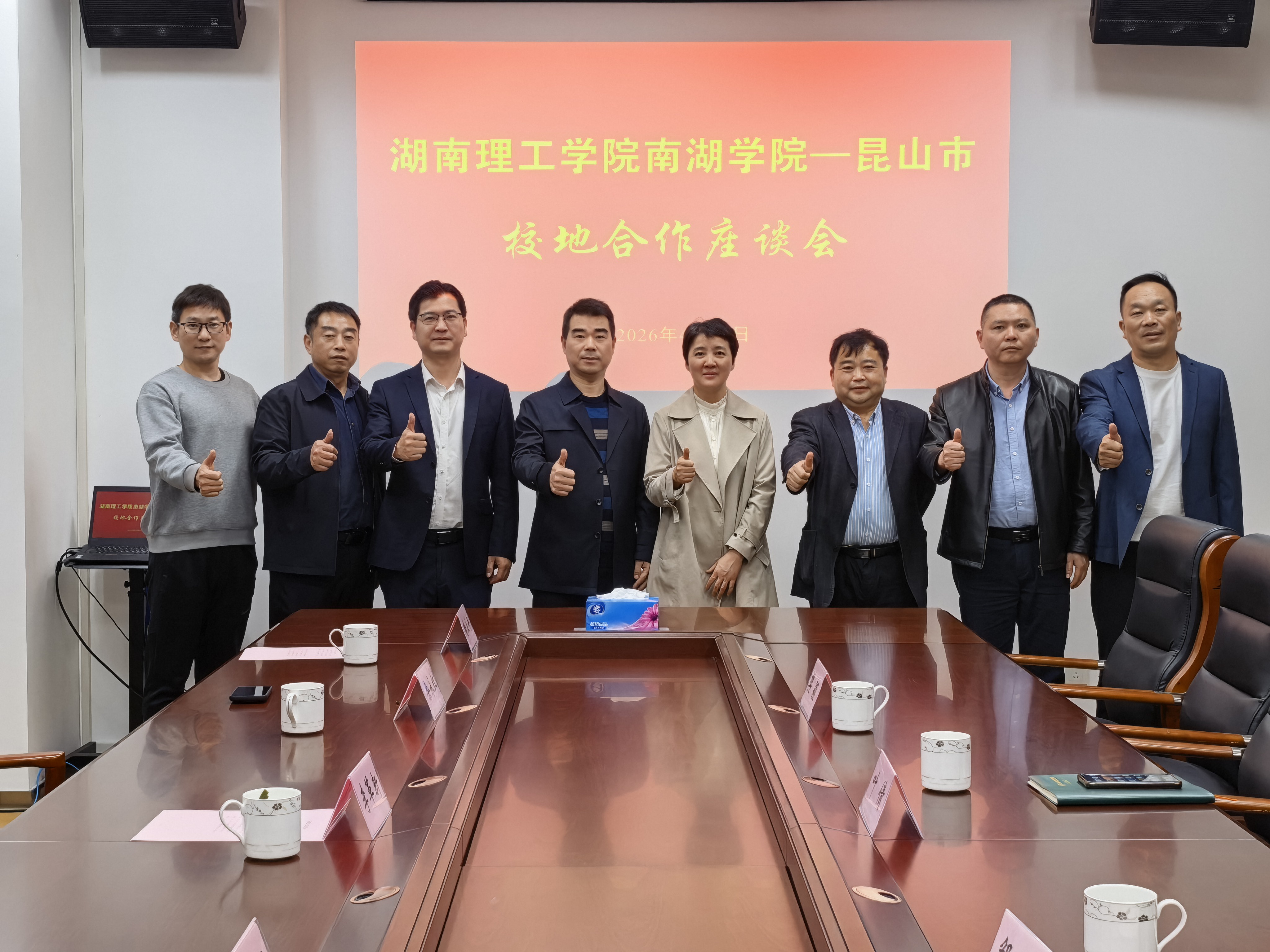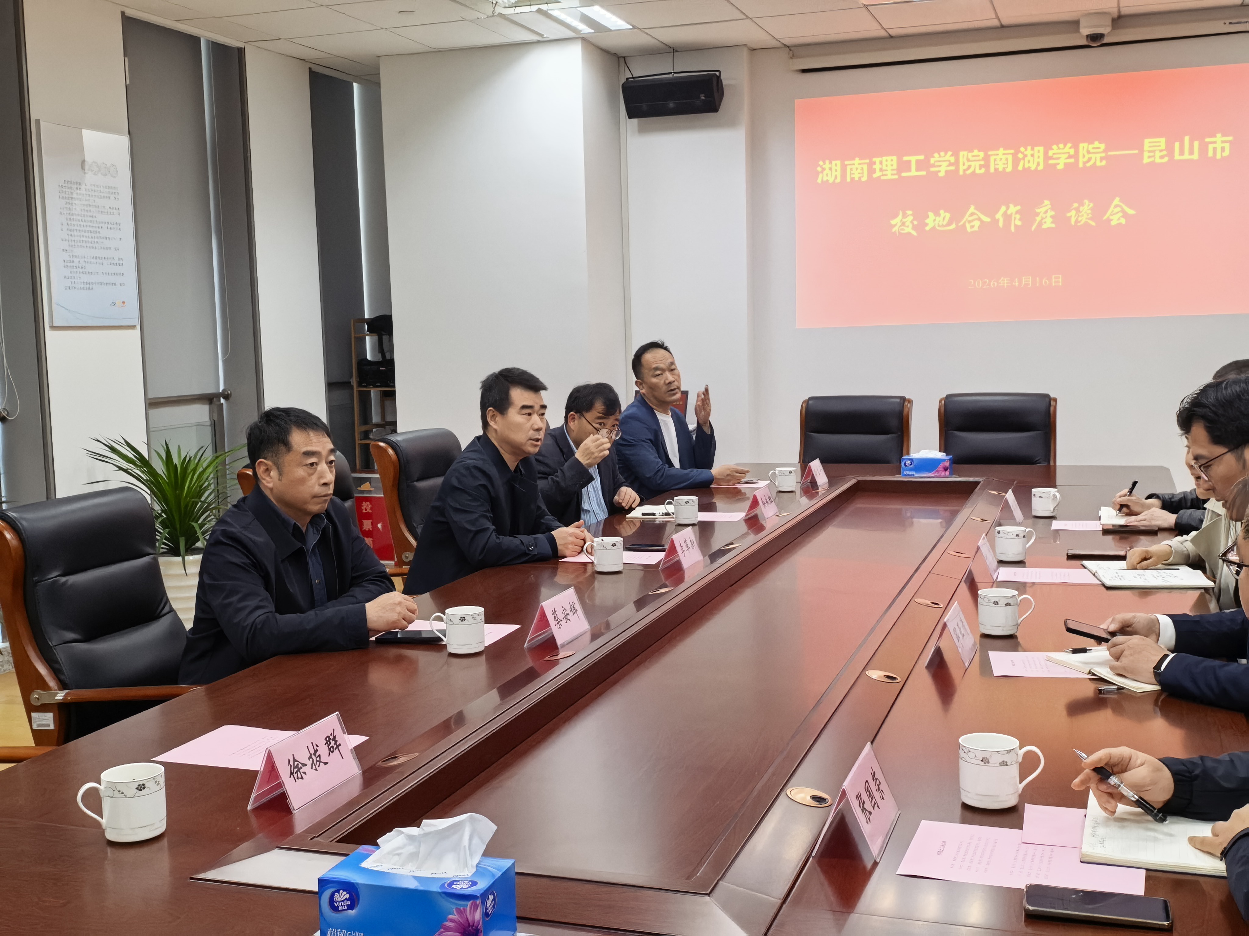 为深化校地协同育人机制,推动高校人才培养与地方人社服务精准对接,南湖学院与昆山市人力资源管理服务中心于2026年4月16日召开校地合作座谈会。南湖学院党委书记李革新、纪委书记余永红、副院长兼机电系主任蔡安辉、机电系党总支书记喻立平和招就办副主任徐拔群,昆山市人力资源和社会保障局党组成员许继华、人力资源管理服务中心主任叶倩、副主任邹亚清、科长樊颖、副科长张国荣出席本次会议。